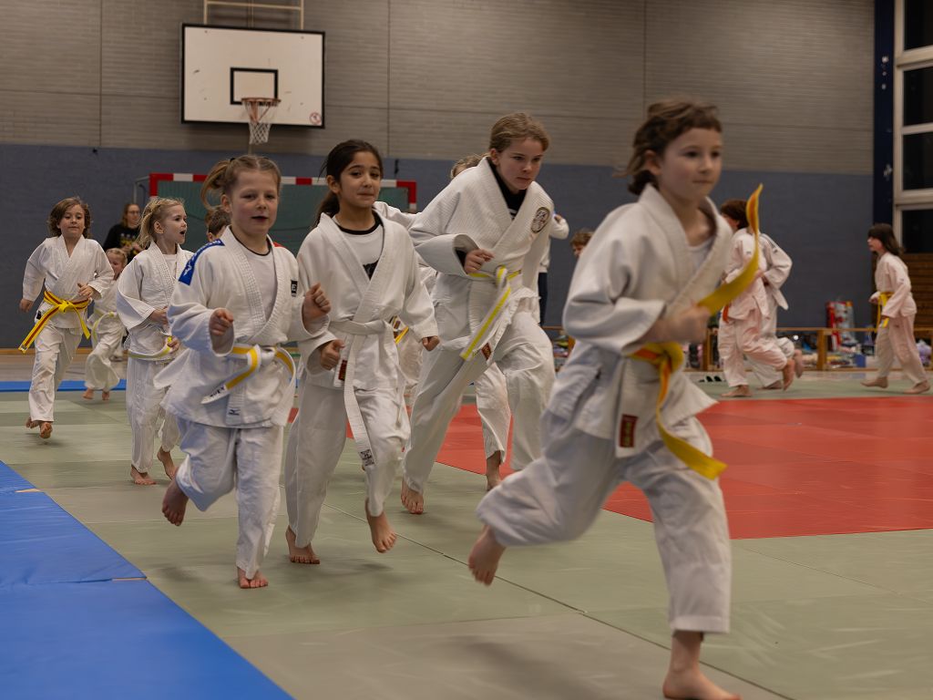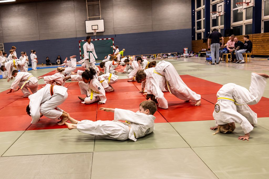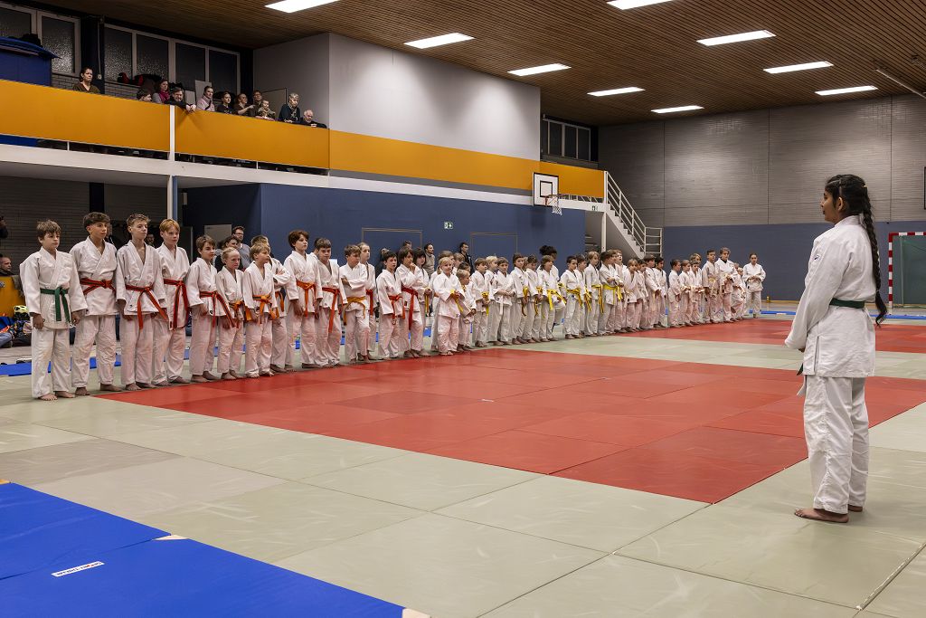 Gut vorbereitet nach dem gemeinsamen Aufwärmen zeigten die jungen Judoka, was sie im letzten Jahr bei ihren Trainern gelernt hatten. Mit viel Energie und Ehrgeiz gingen sie auf die Matte.