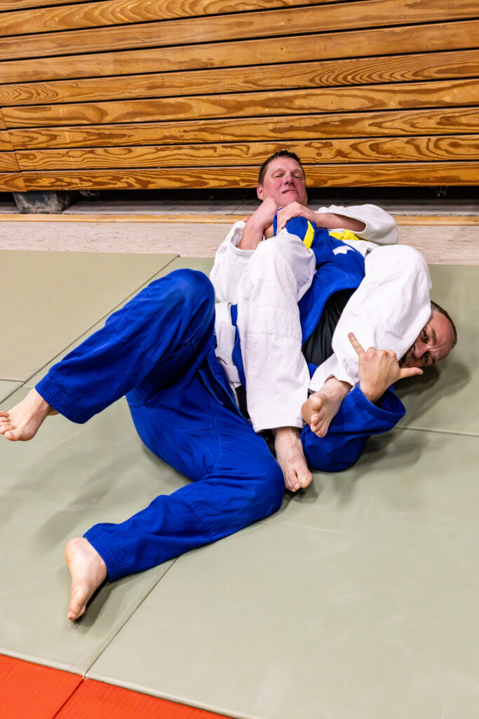Im Training zeigte Andreas konkrete Übergänge vom Stand in den Boden: situativ denken, die richtige Aktion wählen und konsequent durchsetzen. Im Mittelpunkt standen dabei der Juji-gatame (Armhebel) sowie der „Bischof“-Turnover als Lösungen für typische Situationen im Übergang. Besonders wertvoll war das gemeinsame Training über Alters- und Erfahrungsgrenzen hinweg. Jüngere brachten Dynamik ein, erfahrene Judoka Ruhe und Kontrolle. Beides gehört im Judo zusammen.